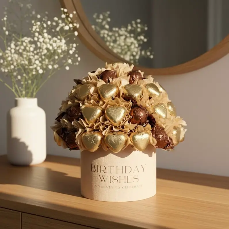 Jeg har fått sjokoladebuketten veldig fort. Og var veldig fornøyd når jeg åpne pakken. Buketten veldig fint og stilig. Men beste var fornøyd øyene fra sjefen når hun sett gave pakke.