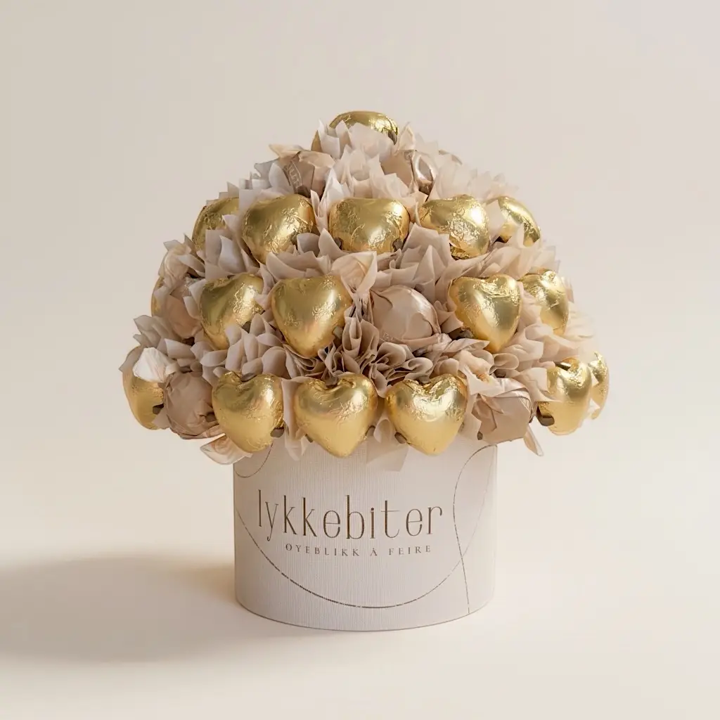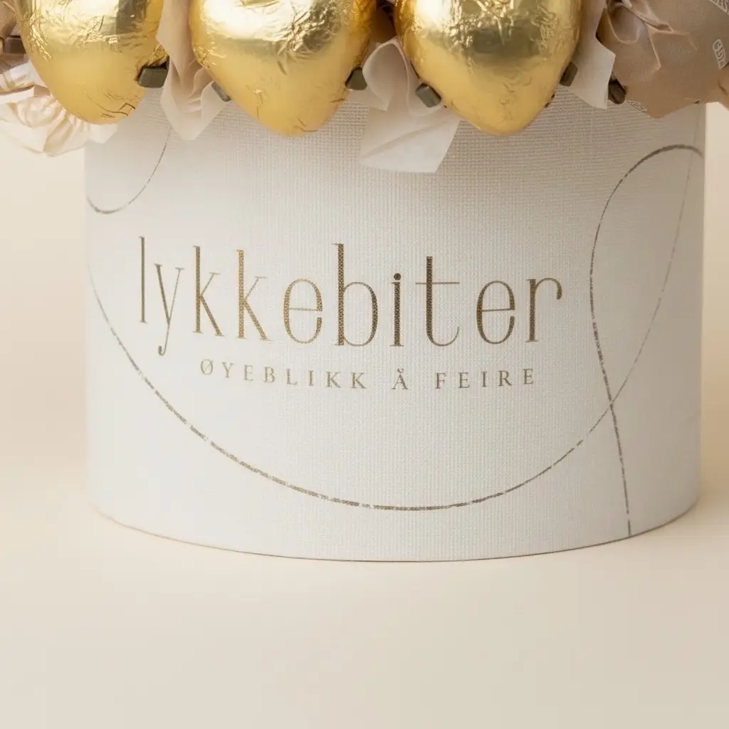 Lykkebiter er den perfekte fristelsen å sette frem til gjestene på konfirmasjonsbordet eller 17-mai feiringen. Passer også perfekt som vertinne- og bursdagsgave. Fylt med Baileys og melkesjokoladepraliner, noe som gjør den til både et voksent og trygt valg.