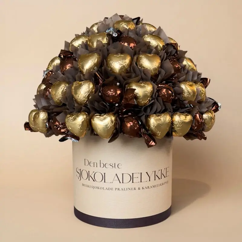 Hvem elsker ikke smaker av karamell, havsalt og eksklusive melkesjokoladepraliner? En stor og generøs bukett som imponerer ved første blikk, og gleder lenge etterpå. Perfekt som gave og dessert.